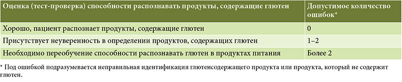 Экспертная группа самостоятельно разработала рекомендации по критериям интерпретации в связи с тем, что в англоязычной версии СДО отсутствовали рекомендации по интерпретации теста на способность пациента распознавать глютенсодержащие продукты (табл. 2).