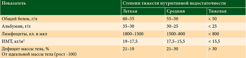 Таблица 1. Степени нутритивной недостаточности