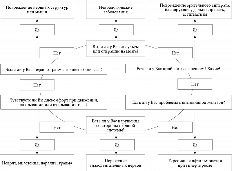 Бинокулярная диплопия может быть следствием серьезных патологий и требует тщательного сбора анамнеза (рисунок).
