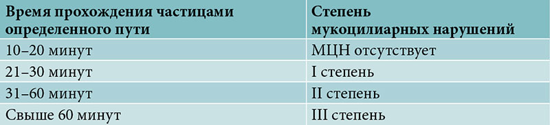 Таблица 9. Интерпретация результатов применения частиц-метчиков для изучения мукоцилиарного клиренса