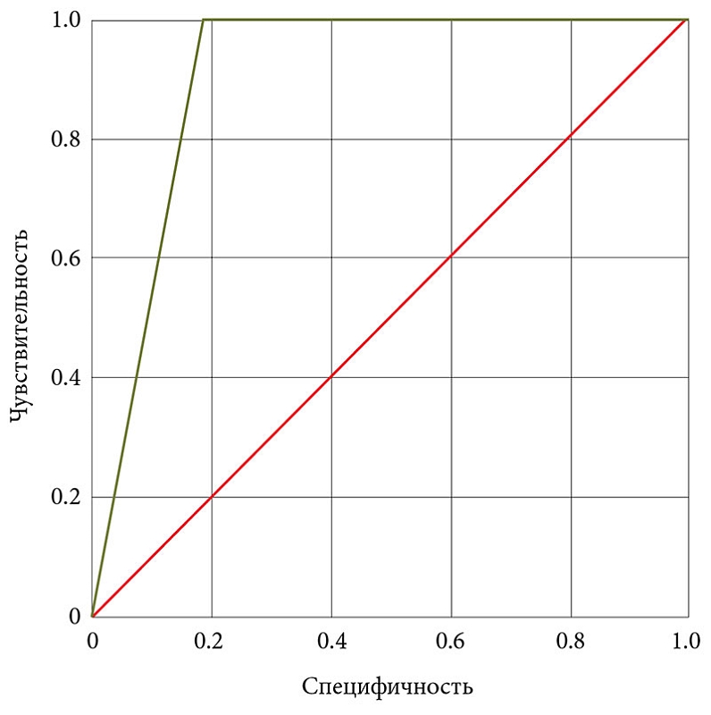 Оценка прогностической валидности модели продемонстрировала высокую дискриминативную способность: чувствительность – 0,833, специфичность – 1,0. Площадь под ROC-кривой (AUC-ROC) составила 0,909 (95%), что указывает на высокую дифференциацию между группами пациентов с ремиссией и рецидивом ЯК (рис. 3). Таким образом, разработанная модель обладает высокой прогностической точностью и может быть рекомендована для клинического применения.