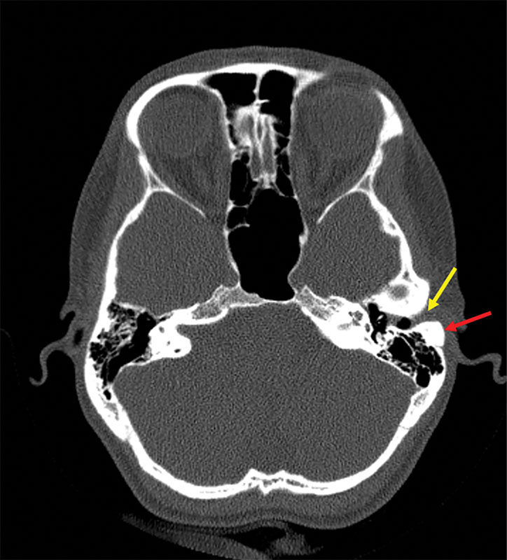 Опухоли уха, как и все новообразования, делятся на доброкачественные и злокачественные. К доброкачественным опухолям уха относятся остеомы височной кости. Остеома – это доброкачественная, медленно растущая мезенхимальная остеогенная опухоль, состоящая из хорошо дифференцированной костной ткани [1]. Остеомы височной кости встречаются редко, составляя 0,1–1% всех доброкачественных опухолей черепа [2]. К 2022 году в медицинской литературе было описано менее 200 клинических случаев остеом височной кости [3]. Остеомы практически бессимптомны до достижения критического размера [4].