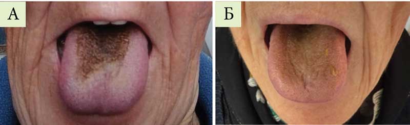 Черный волосатый язык (lingua villosa nigra) (далее ЧВЯ) – это доброкачественное, полностью обратимое состояние, характеризующееся гиперплазией и гиперкератозом нитевидных сосочков языка с удлинением до 1–2 см и черным или темно-коричневым окрашиванием [1, 2]. Пигментация обусловлена накоплением на удлиненных сосочках хромогенных (пигмент-продуцирующих) бактерий и дрожжеподобных грибов [1, 3]. Данное состояние не является самостоятельной нозологией, а зачастую служит симптомом или следствием других патологий, включая заболевания желудочно-кишечного тракта (ЖКТ) [4, 5]. Описываемый феномен не носит злокачественного или контагиозного характера [1, 2]. К основным этиологическим факторам относят курение, частое употребление крепкого чая, кофе и алкоголя, прием антибиотиков (в частности, тетрациклинового и пенициллинового ряда), а также неудовлетворительную гигиену полости рта [1, 2, 6]. ЧВЯ ассоциирован с рядом заболеваний ЖКТ, включая как функциональные, так и хронические воспалительные процессы [4, 5, 7], и встречается у 0,6–11,3% населения, чаще у мужчин старше 40 лет и курильщиков [1, 8].