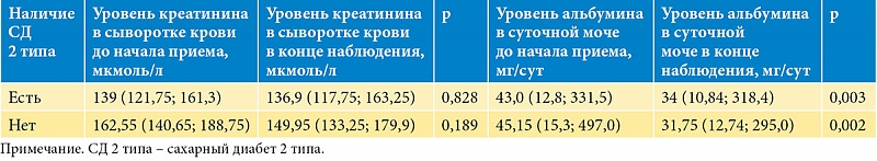 Наличие СД 2 типа не влияло на динамику показателей (табл. 3).