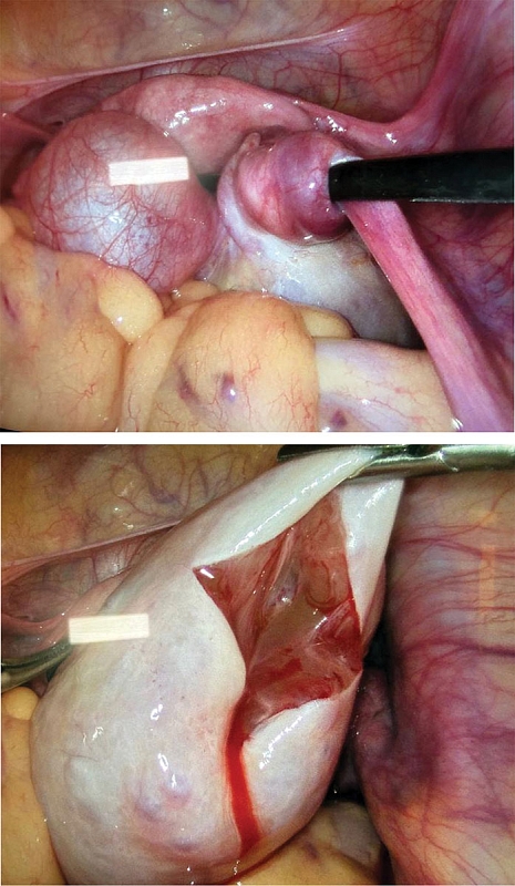 Интраоперационно необходимо провести ревизию органов малого таза и осмотреть придатки для оценки перекрута и определения лечебной тактики.