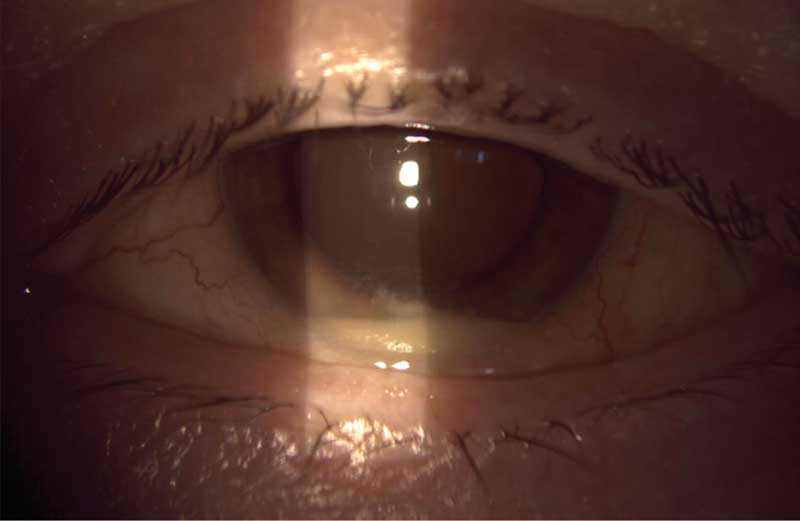Гипопион – классический признак ПОЭ, однако его прогностическое значение неоднозначно. С одной стороны, наличие гипопиона подтверждает диагноз и свидетельствует о выраженности воспаления, с другой – небольшая высота гипопиона может наблюдаться при синдроме токсического поражения переднего отрезка глаза, а также на ранних стадиях эндофтальмита (рис. 1). В исследовании G.A. Lalwani и соавт. высота гипопиона > 1,5 мм коррелировала с худшим прогнозом [17].