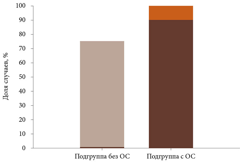 Статистически значимой корреляции между видом микроорганизма и частотой развития ОС не выявлено (p = 0,45). Это говорит о том, что дальнейшая патология ВРИ в большей степени обусловлена результатом общего воспалительного ответа, а не спецификой возбудителя.