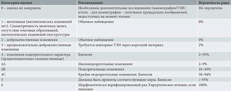 В ряде исследований последних лет показано, что система BI-RADS (Breast Imaging-Reporting and Data System, визуализация молочных желез – система отчетности и базы данных) успешно применяется для дифференциальной диагностики злокачественных и доброкачественных образований молочной железы [7, 8]. Тем не менее вопрос об уровне ее точности остается спорным. Для четкой верификации необходимы дополнительные результаты (биопсия) [9, 10].