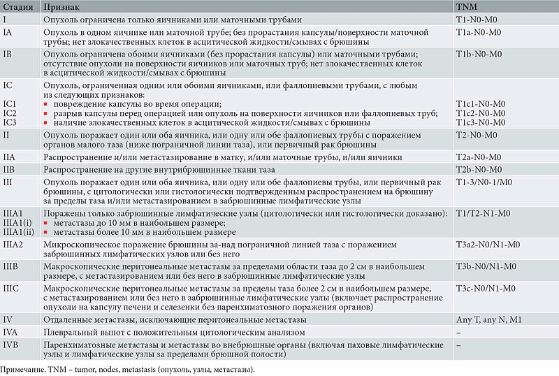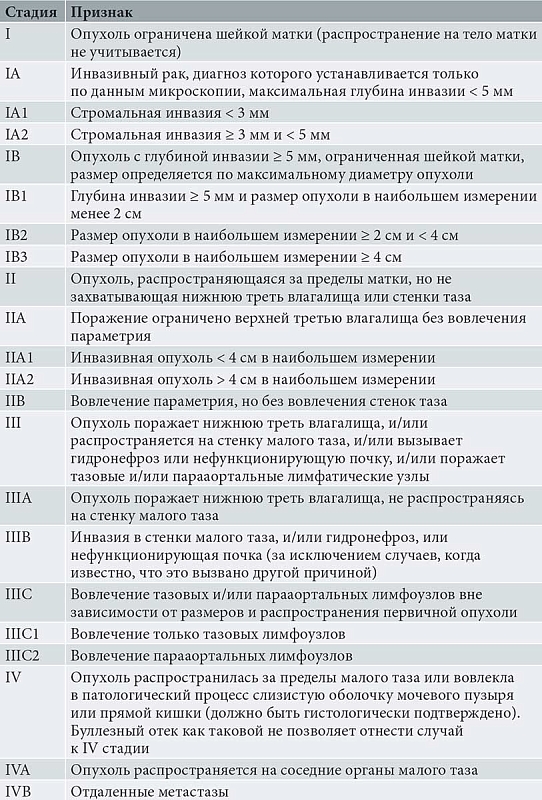 Существует классификация FIGO, на основании которой стадию онкологического процесса определяют по анатомической распространенности (табл. 2) [15].