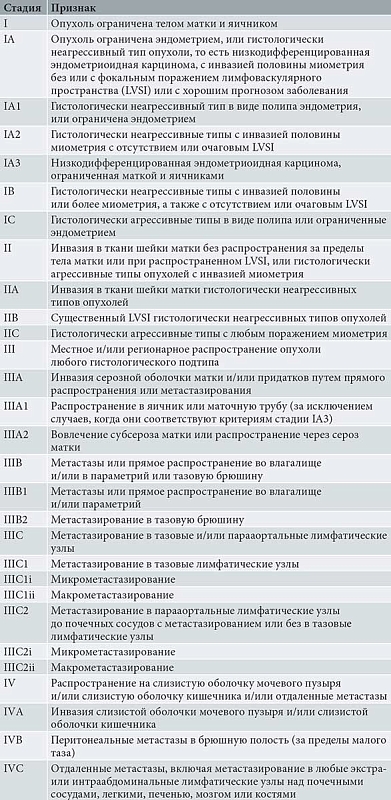 Классификация рака эндометрия (рака тела матки) по FIGO [27] представлена в табл. 3.
